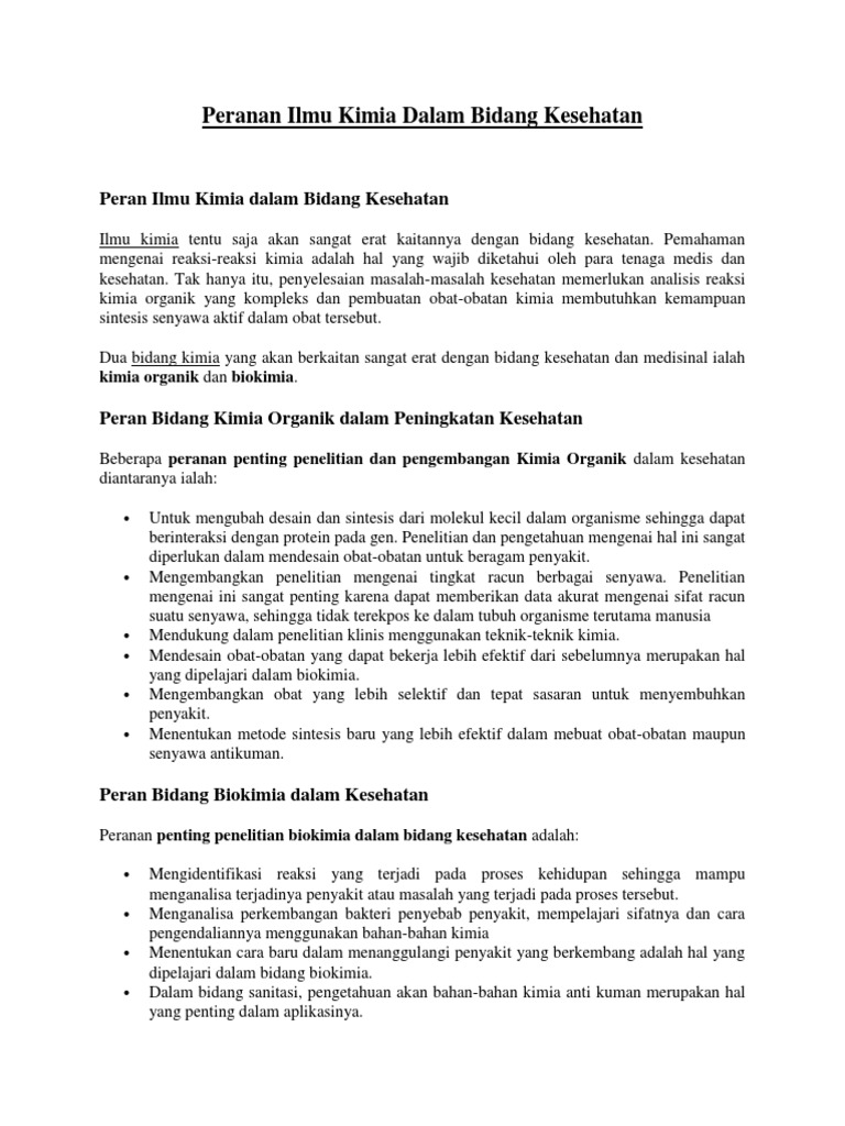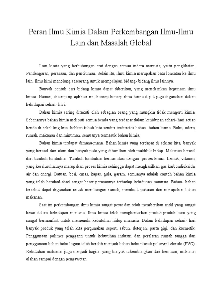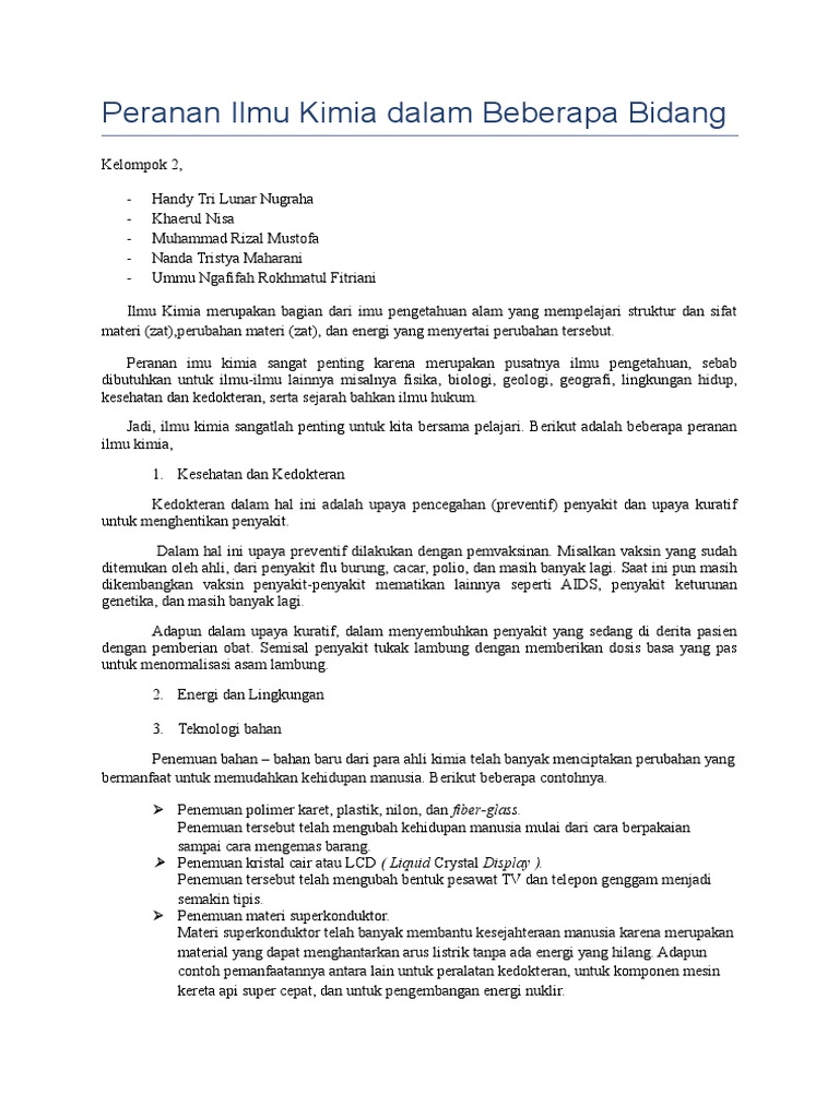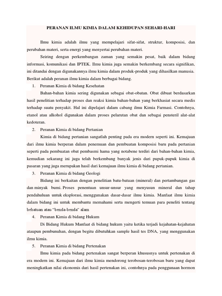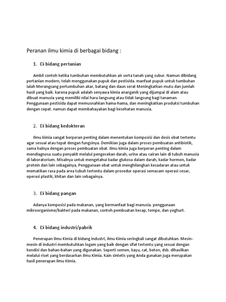 Peranan Ilmu Kimia Dalam Ilmu Pengetahuan Sangat Banyak Sebutkan Contoh Penerapan Ilmu Kimia Dalam Brainly Co Id