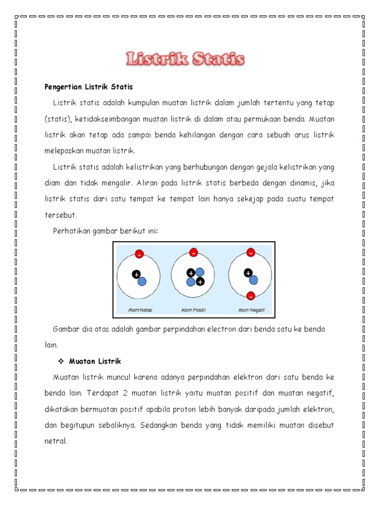 Listrik Statis Dan Listrik Dinamis Docx Makalah Listrik Statis Dan Listrik Dinamis Disusun Untuk Memenuhi Tugas Mata Kuliah Ilmu Pengetahuan Alam Sd 2 Course Hero
