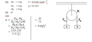 Sistem Katrol Dengan 2 Buah Benda M1 2 Kg M2 6 Kg Dihubungkan Katrol Bermassa 4 Kg Percepatan M1 Brainly Co Id