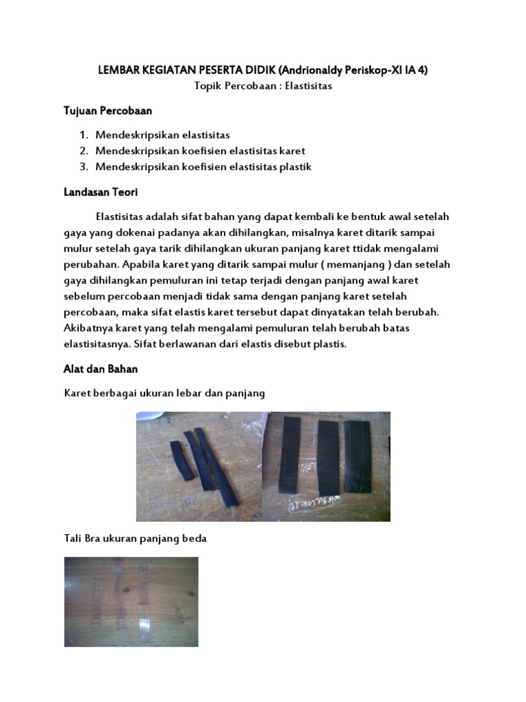 Berdasarkan Data Hasil Percobaanmenentukan Elastisitas Karet Denganmenggunakan Karet Ban Berikut Brainly Co Id