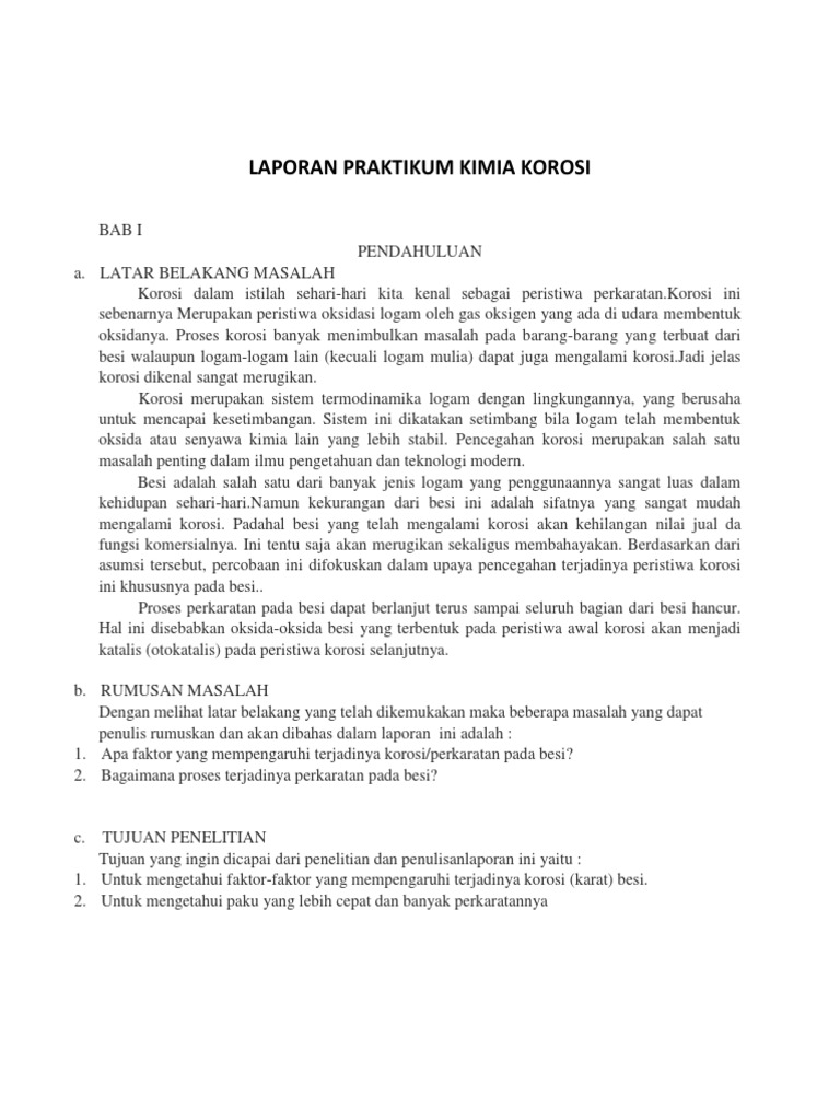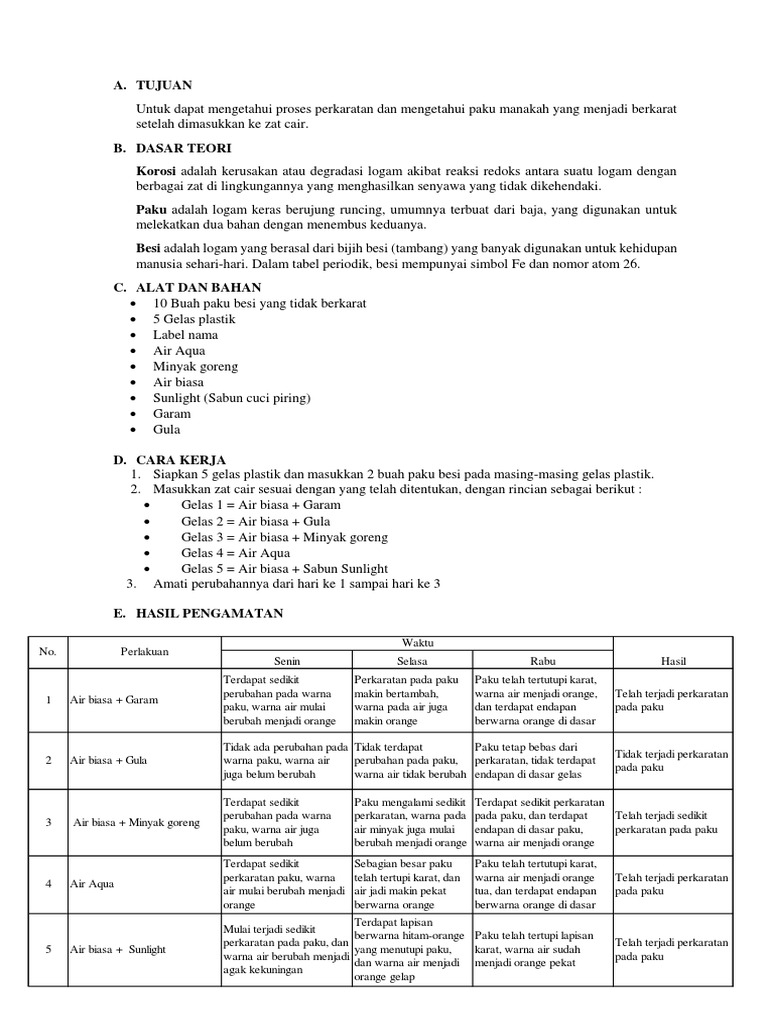 Doc Laporan Praktikum Korosi Di Susun Oleh Xii Ipa 1 Kelompok 4 Sma Negeri 13 Kabupaten Tangerang Rifky Aditya Academia Edu