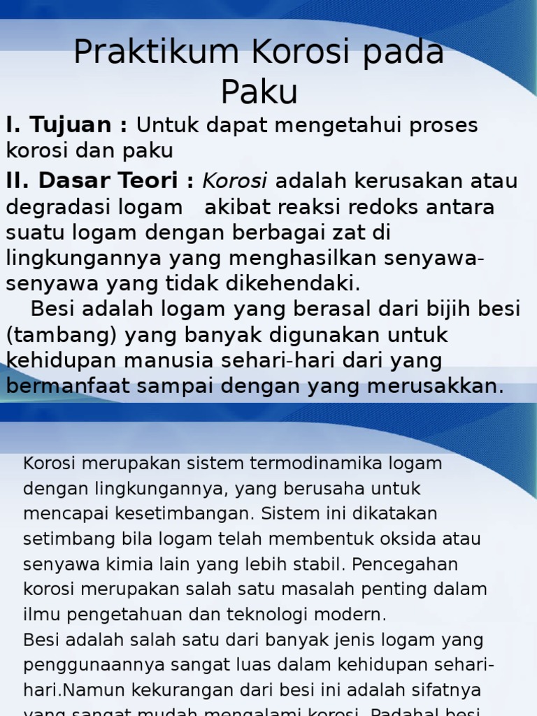 Laporan Praktikum Korosi Pada Paku Docx Document