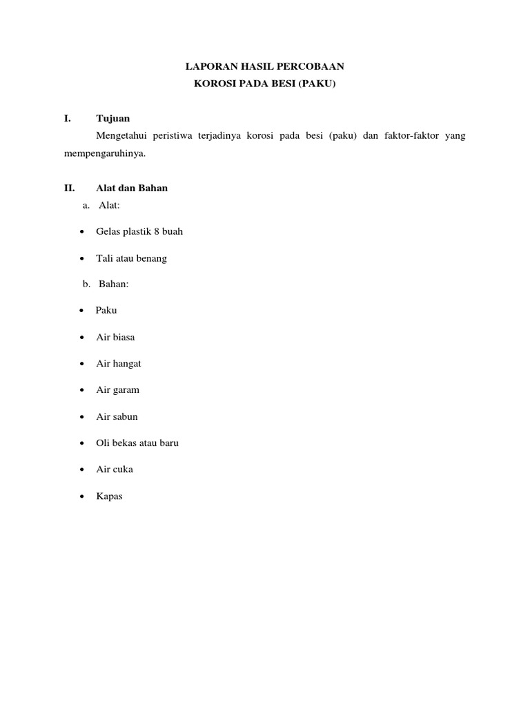 Contoh Laporan Praktikum Kimia Tentang Korosi Pada Paku Kumpulan Contoh Laporan