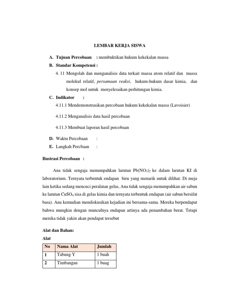 Membuktikan Hukum Kekekalan Massa By Putra Ferdiansyah