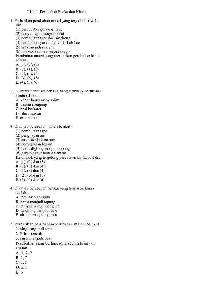 Lembar Kegiatan Siswa Pengamatan Perubahan Fisika Dan Perubahan Kimia