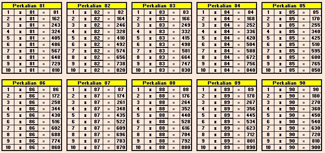 Tabel Perkalian 1 200 Pembagian Pengurangan Dan Penambahan Haysekolahku