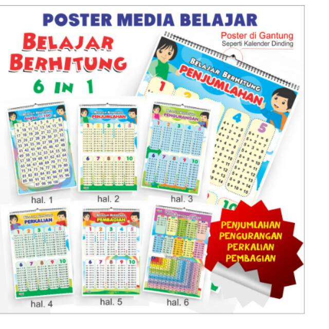 Poster Belajar Berhitung Penjumlahan Pengurangan Pembagian Untuk Anak Sd Shopee Indonesia