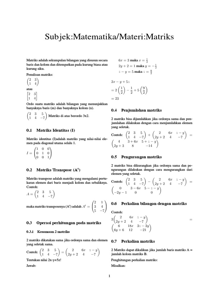 Penjumlahan Dan Pengurangan Matriks Ilmu Hitung