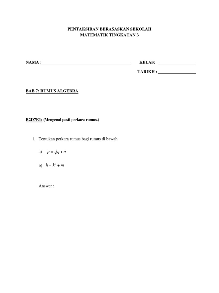 Cikgu Azman Bukit Jalil Tingkatan 2 Matematik Bab 3 Rumus Algebra Menjana Kecemerlangan Ms 50