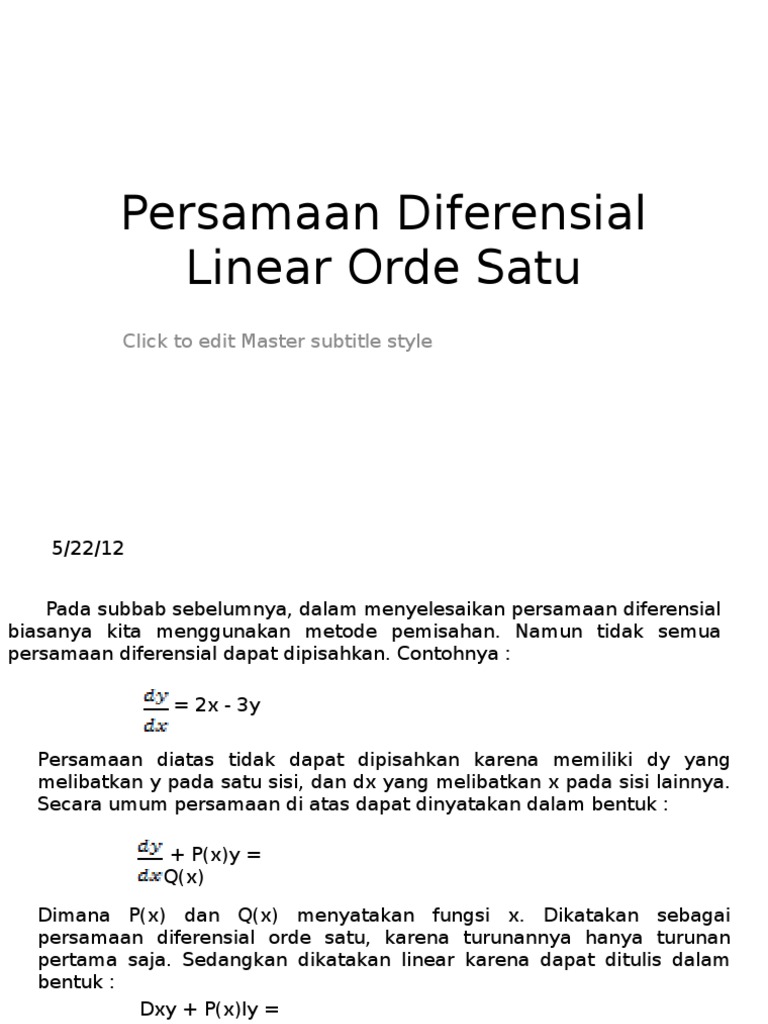 Ppt 3 Persamaan Diferensial Linier Orde Satu Bentuk Umum Powerpoint Presentation Id 3616491