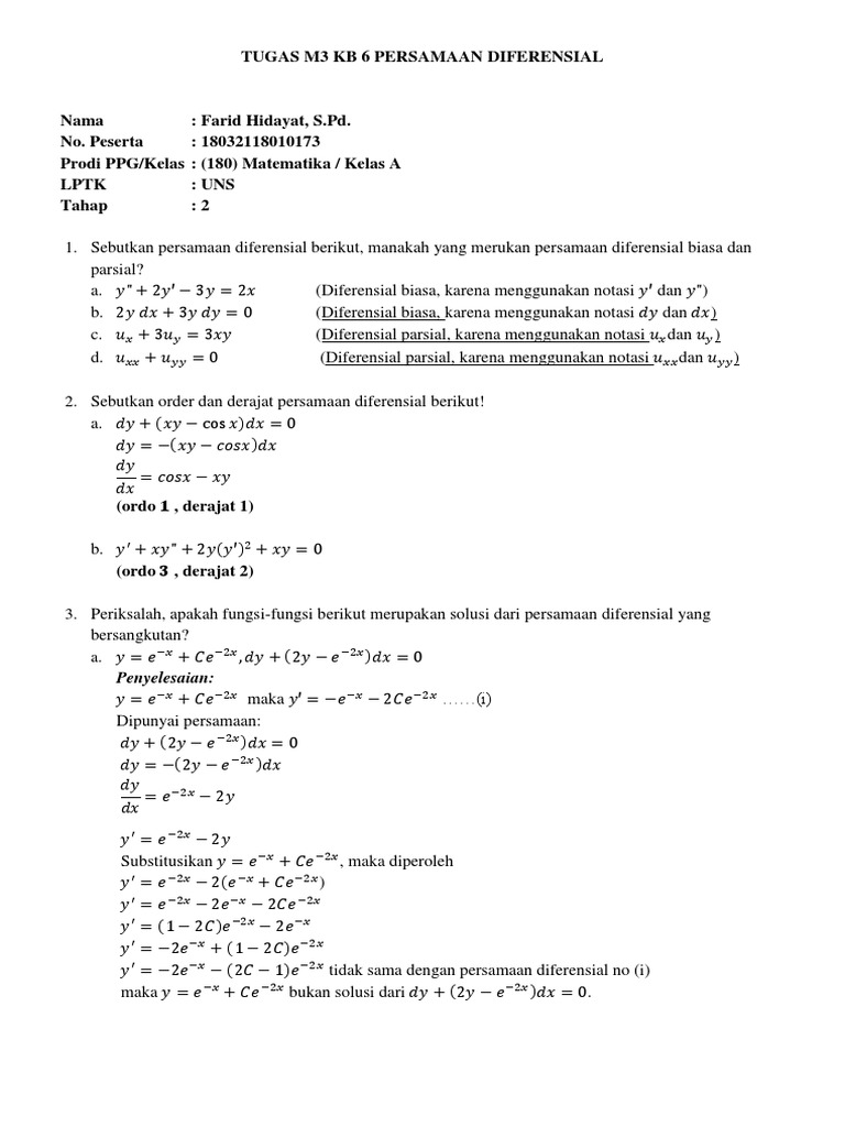 Metode Koefisien Tak Tentu Untuk Penyelesaian Pd Linier Homogen Tak Homogen Orde 2 Matematika Teknik I Sigit Kusmaryanto Pdf Free Download