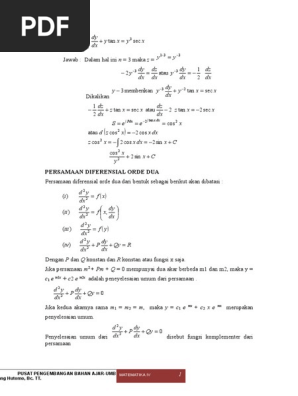 Persamaan Diferensial Orde 2 Pdf 15 Persamaan Diferensial Orde Ii 1 Review Persamaan Diferensial Persamaan Diferesial Merupakan Persamaan Yang Course Hero
