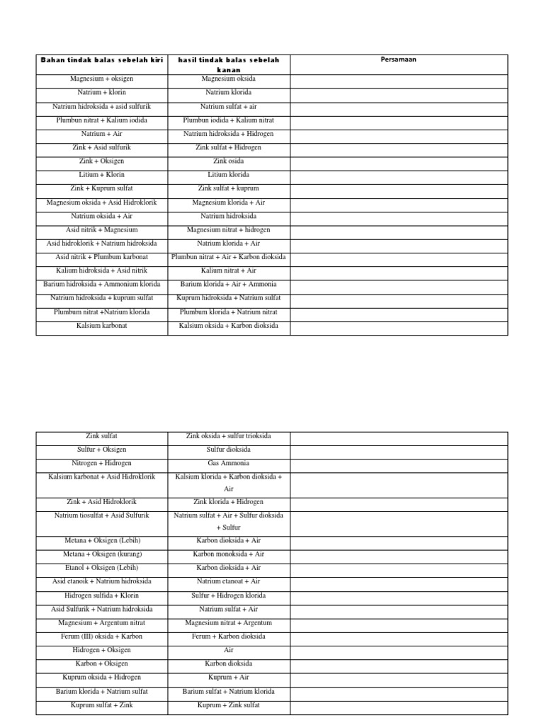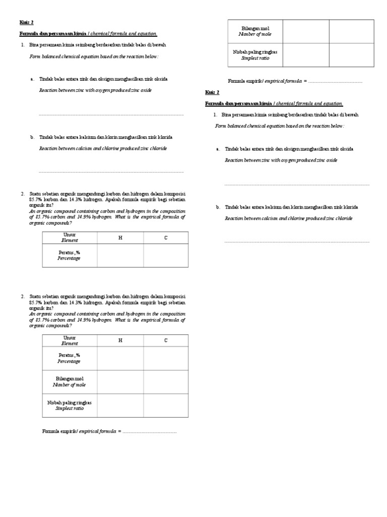 Latihan pengukuhan persamaan kimia tingkatan 4 1. B jika 13g zink bertindakbalas dengan asi hidroklorik berlebihan i cari jisim zink klorida yang terhasil. Besizink larutan asam klorida.