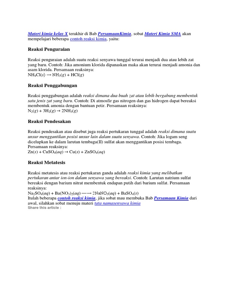 Zncl 2 sendiri bersifat higroskopissampel senyawa ini harus dilindungi dari sumber kelembapan termasuk uap air yang terdapat pada udara ambien. Dalam menuliskan persamaan reaksi rumus kimia pereaksi dituliskan di ruas kiri dan rumus kimia hasil reaksi dituliskan di ruas kanan. Reaksi antara barium oksida dengan ammonium klorida menyebabkan penurunan suhu.