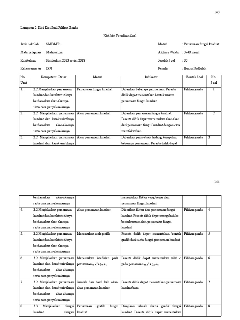 Kumpulan Contoh Soal Contoh Soal Fungsi Kuadrat Smp Kelas 9 Kurikulum 2013