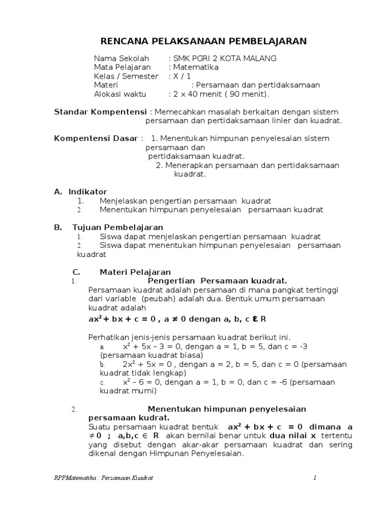 Penerapan Persamaan Kuadrat Dalam Kehidupan Sehari Hari Pendidikan Matematika