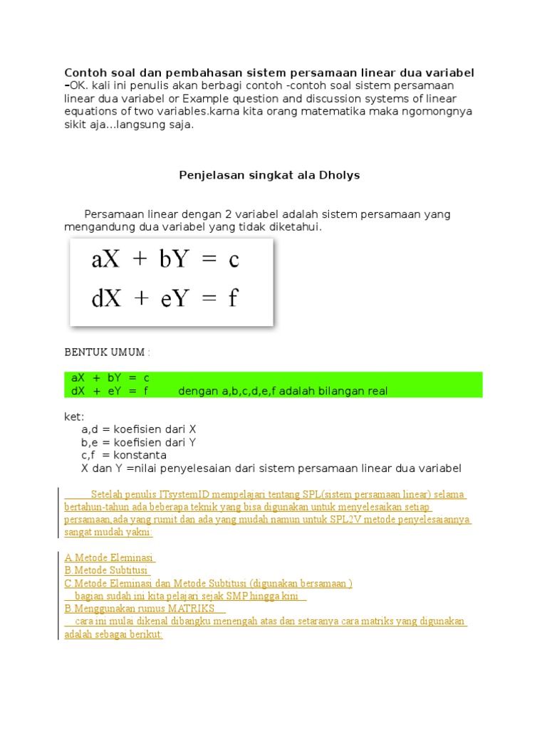 Tolong Dijawab Ya Tuliskan Contoh Soal Persamaan Linear 2 Variabel Brainly Co Id
