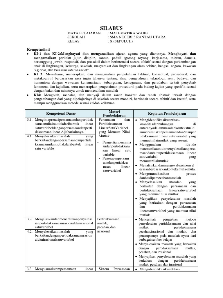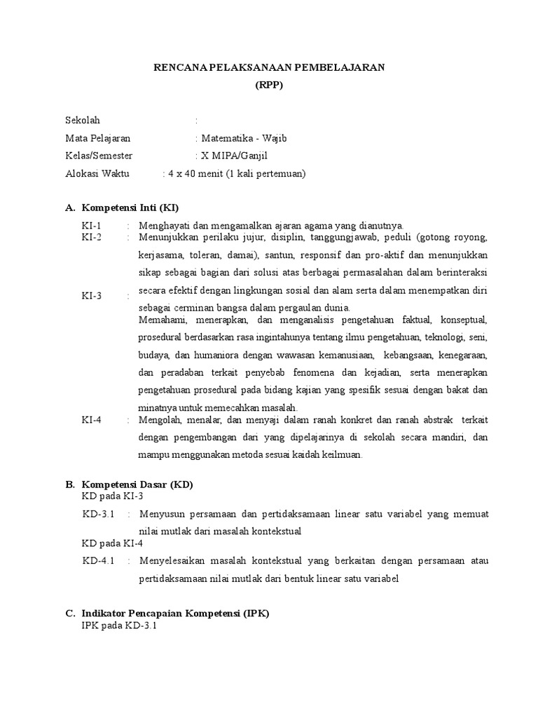 16 Ud Rpp 1 Persamaan Dan Pertidaksamaan Linear Satu Variabel Yang Memuat Nilai Mutlak Docx Rencana Pelaksanaan Pembelajaran Sekolah Mata Pelajaran Course Hero