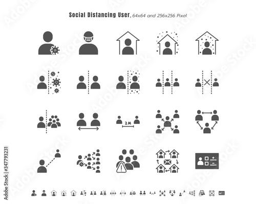 Simple Set Of Social Distancing People Or User Coronavirus 2019 Or Covid 19 Related Such As Quarantine Physical Distancing Crowded Close Contact Solid Glyph Icons Vector 64x64 Pixel Buy This Stock Vector