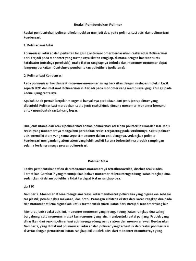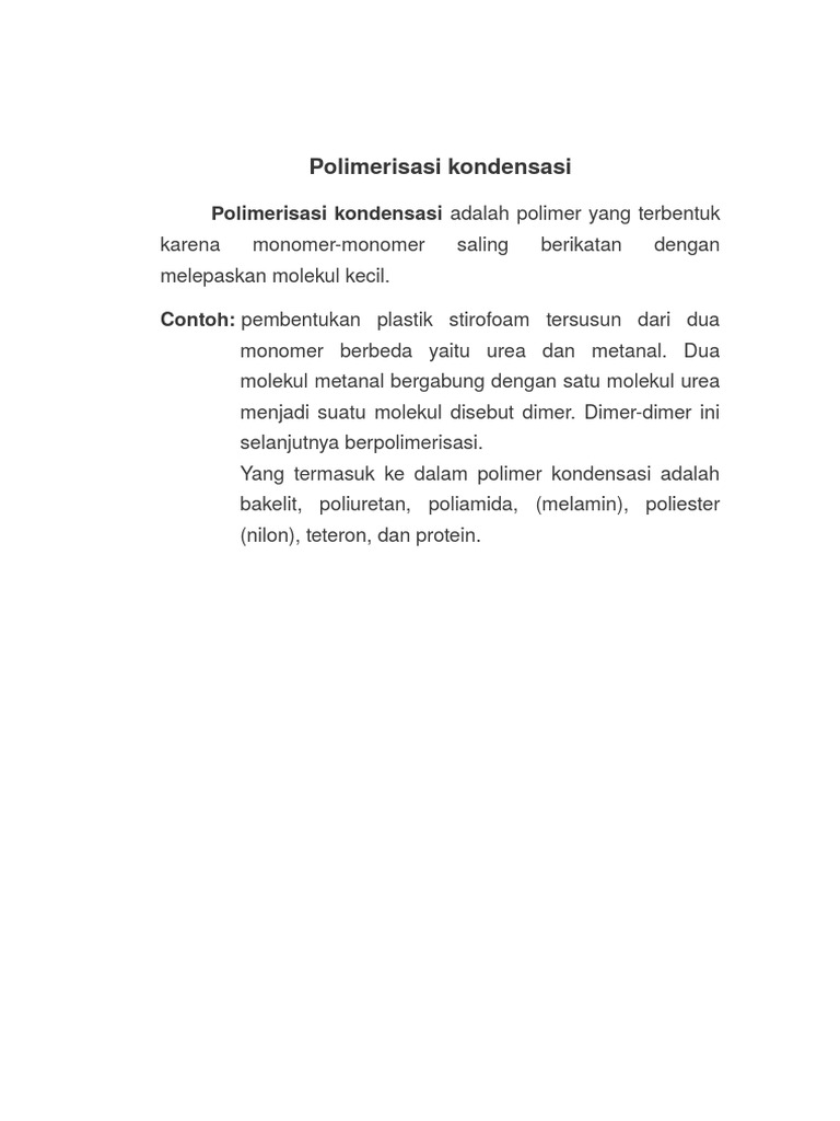 Contoh Polimerisasi Adisi Dan Kondensasi
