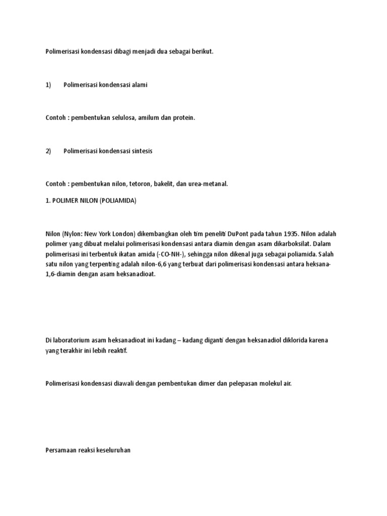 Polimerisasi Kondensasi Docx Polimerisasi Kondensasi Ini Adalah Laporan Gw Tentang Kimia Polimer Buat Kalian Yang Mau Baca Silahkan Free Untuk Course Hero