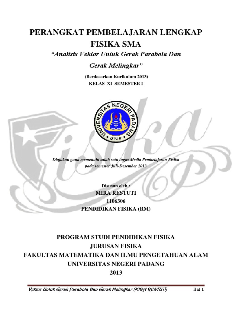 Perangkat Pembelajaran Lengkap Fisika Sma Analisis Vektor Untuk Gerak Parabola Dan Gerak Melingkar