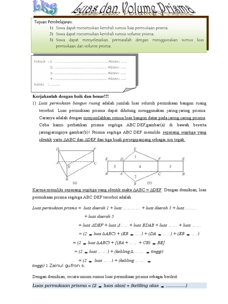 Prisma Pengertian Prisma Adalah Bangun Ruang Yang Dibatasi Oleh Dua Bidang Berhadapan Yang Kongruen Dan Sejajar Yang Disebut Alas Dan Tutup Prisma Serta Ppt Download