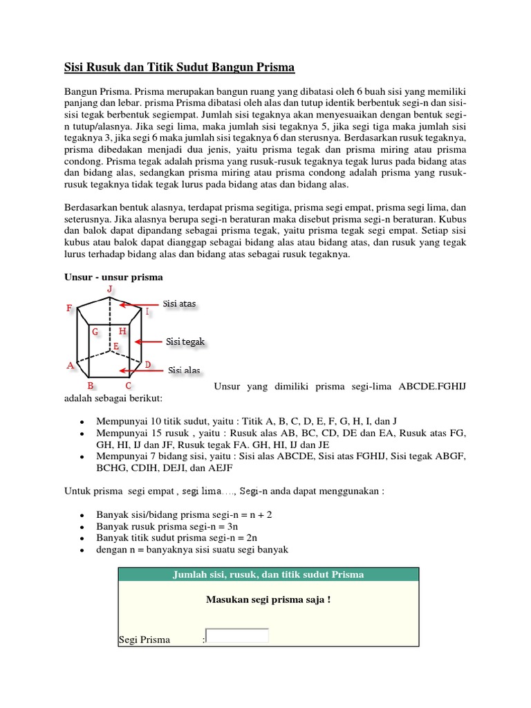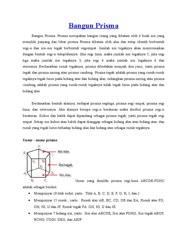Prisma Sifat Unsur Jaring Jaring Prisma Rumus Prisma Dan Contoh Soal Lengkap