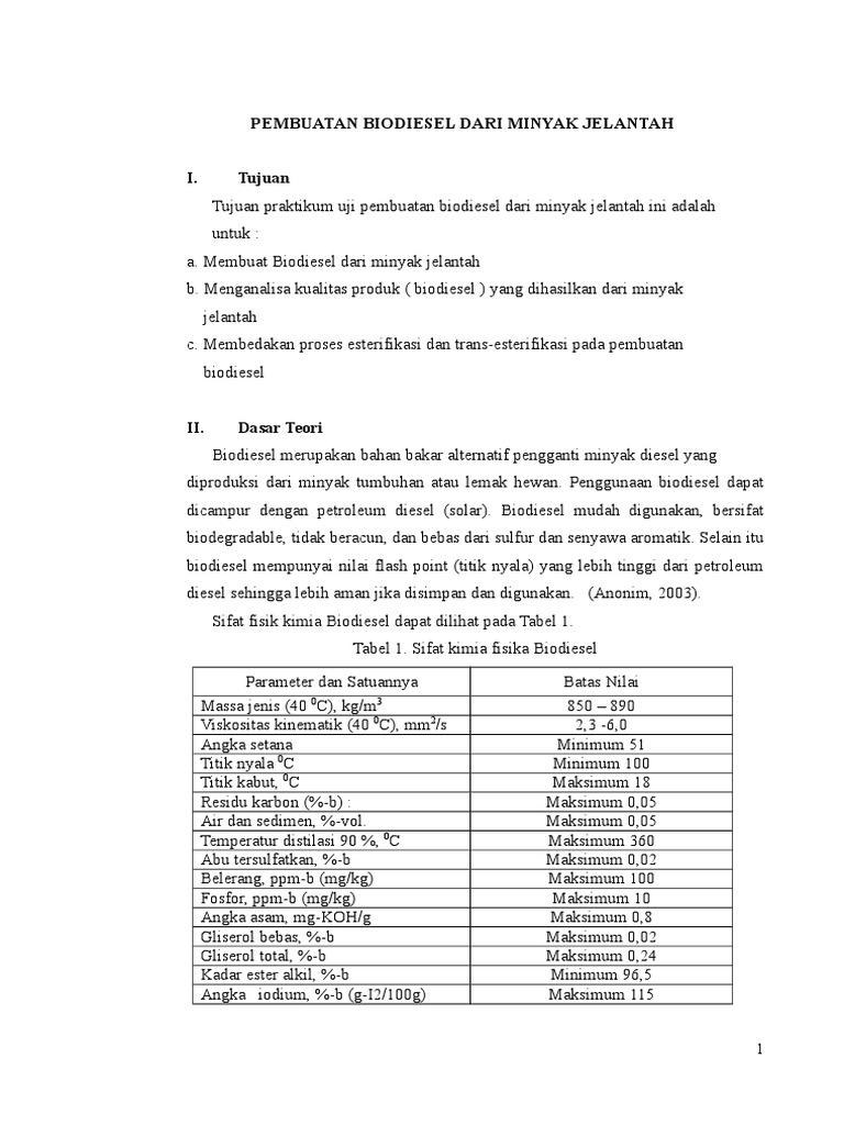 Pembuatan Biodiesel Dari Minyak Biji Kapok Dengan Proses Esterifikasi Transesterifikasi Core