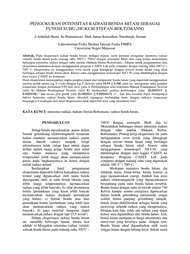 Al Ghuroba Com Laporan Fisika Modern Pengukuran Iintensitas Radiasi Benda Hitam Sebagai Fungsi Suhu Hukum Stefan Boltzman