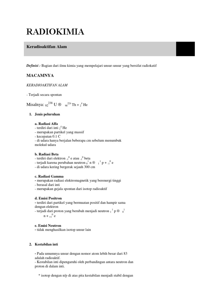 Kimia Inti Dan Radiokimia Budi Budi Inti Persamaan Reaksi Inti Menunjukkan Bagaimana Atom Atom Meluruh Sama Dengan Persamaan Kimia Harus Ada Kesetaraan Massa Dan Muatan Berbeda Pdf Document