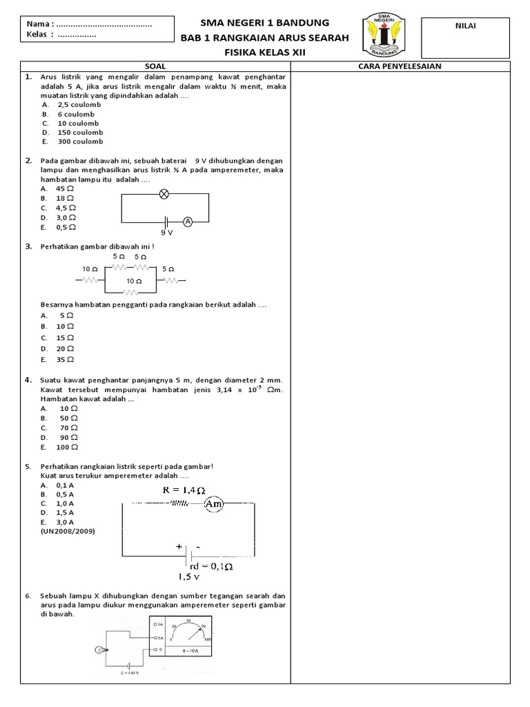 Contoh Soal Dan Penyelesaian Rangkaian Arus Searah 2 Contoh Soal Dan Penyelesaian Fisika