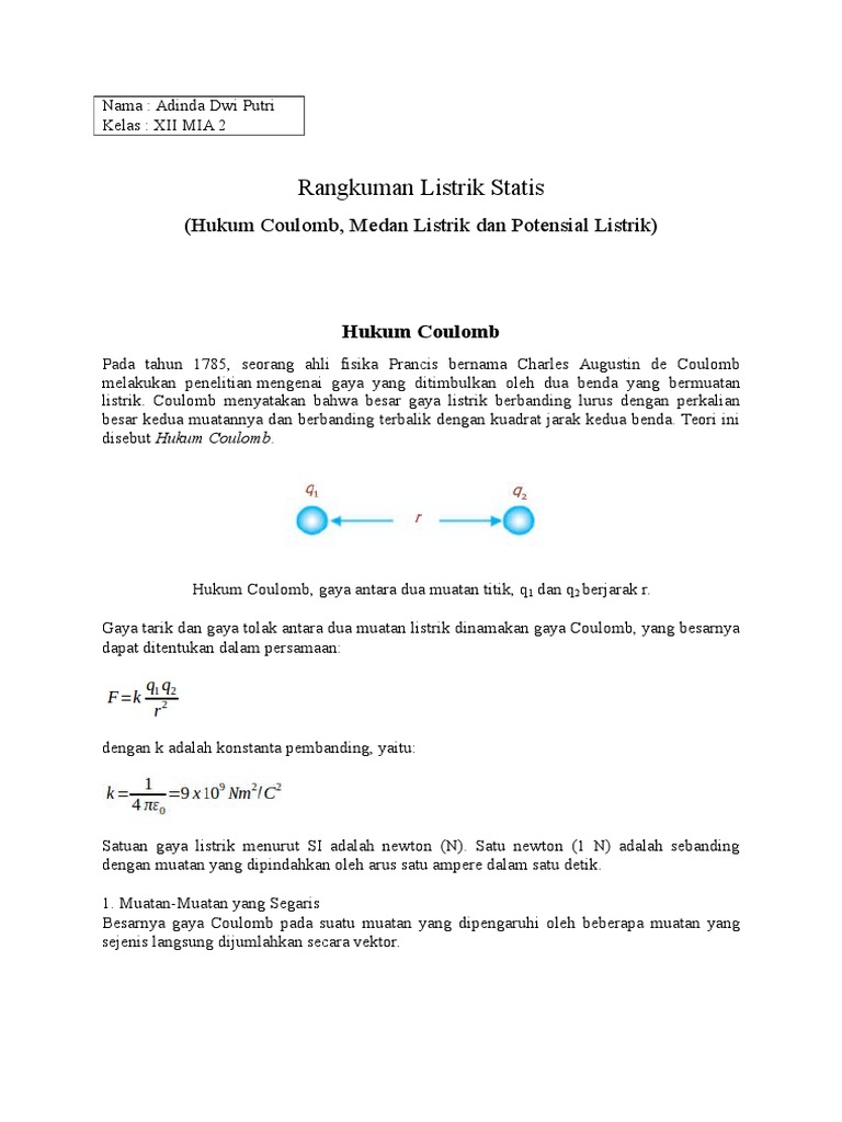 Materi Fisika Sma Kelas Xii Listrik Statis Part 1 Gaya Medan Fluks Energi Potensial Listrik Youtube