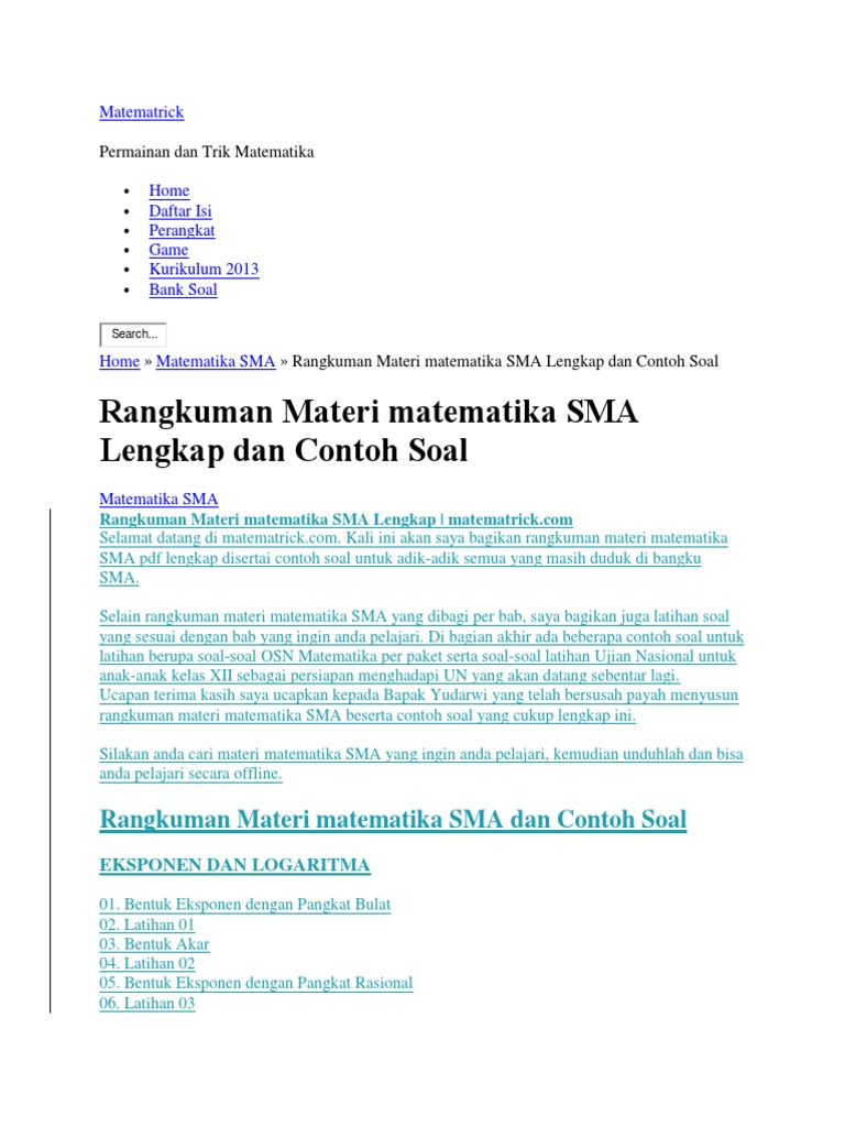 Semua Soal Ulangan Matematika Sma Diambil Dari Buku Ini Rangkuman Materi Kelas X Xi Xii Di Lapak Seribu Buku Bukalapak
