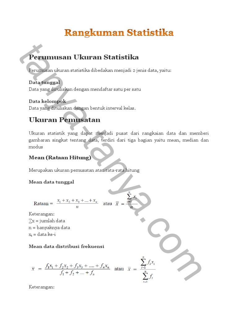 Nama Kelas Ringkasan Statistika Kelas Xi Sma Tarakanita 1 Jakarta 3 Pada Data Tinggi Badan Di Atas Data Setelah Diurutkan Menjadi 152 154 160 167 176 Setelah Diurutkan Kita Pdf Document