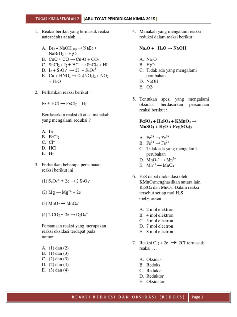 Reaksi Redoks Definisi Bilangan Oksidasi Kosnep Redoks Contoh Soal