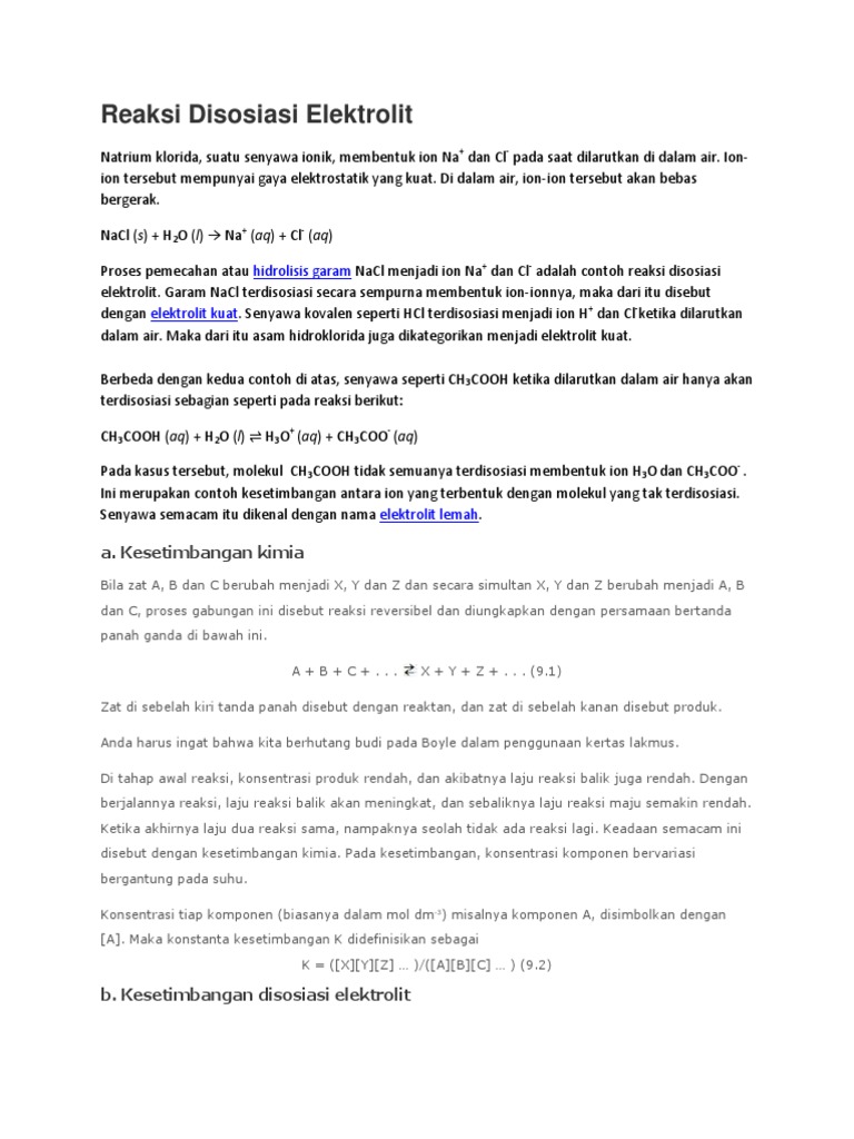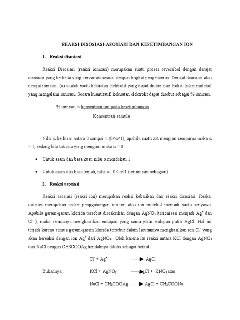 Doc Reaksi Dissosiasi Assosiasi Dan Kesetimbangan Ion Fuada Haerana Rifai Academia Edu