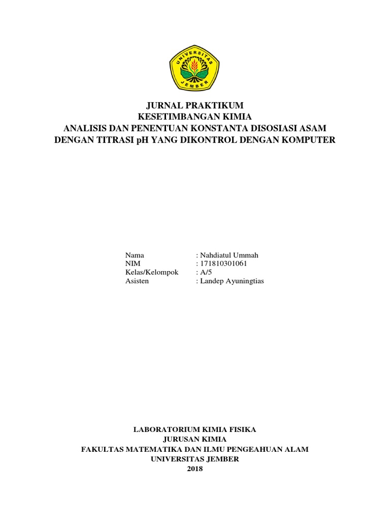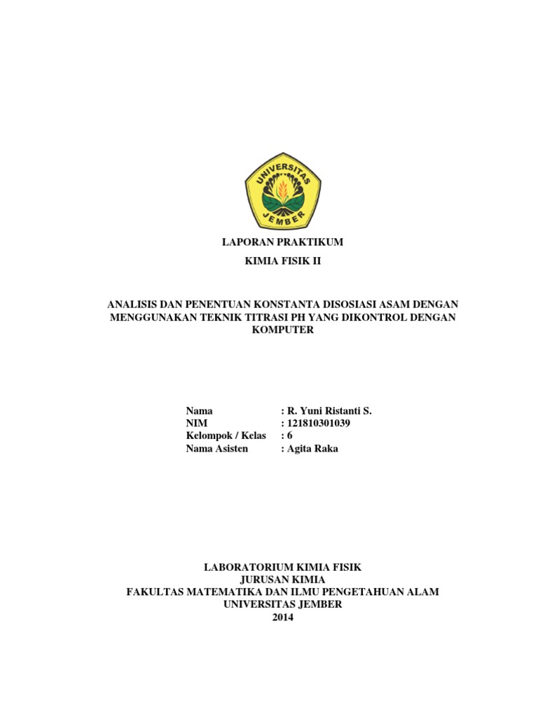 Laporan Analisis Dan Penentuan Konstanta Disosiasi Asam Dengan Titrasi Ph Yang Dikontrol Dengan Komputer Muhammad Hisyam Nuri A G 141810301015