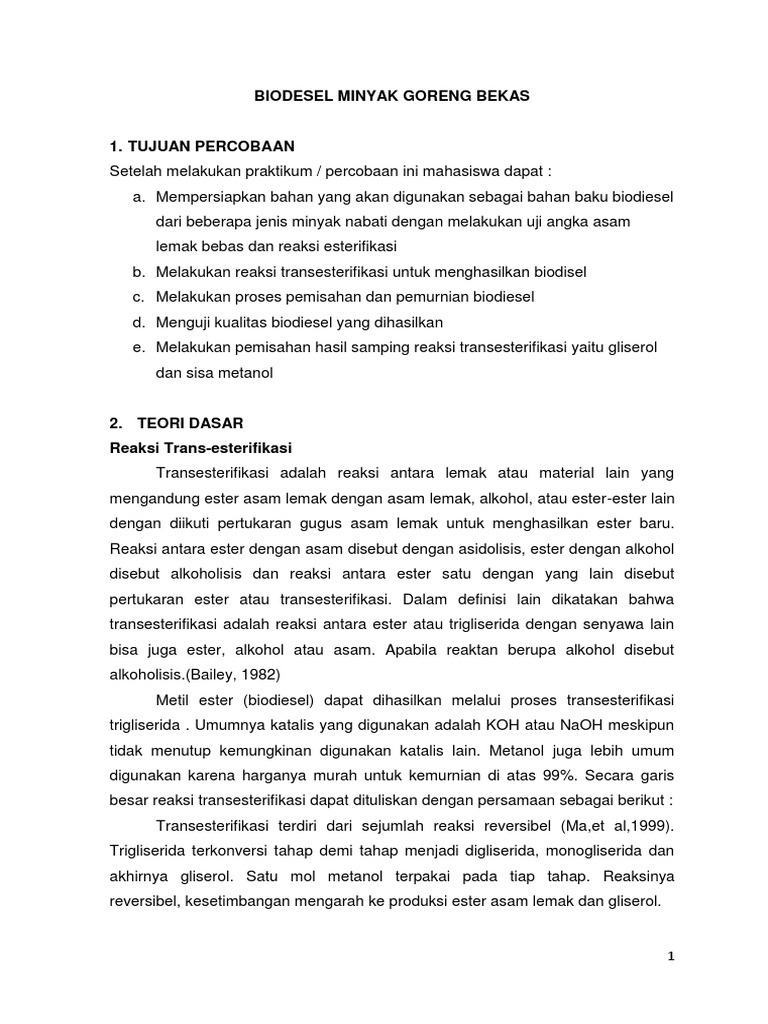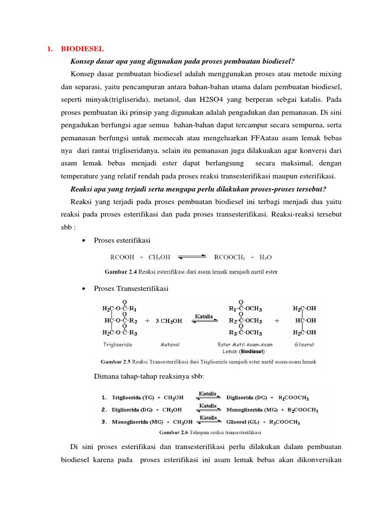 Transesterifikasi biasa disebut dengan alkoholisis adalah tahap konversi dari trigliserida minyak nabati menjadi alkyl ester melalui reaksi dengan alkohol dan menghasilkan produk samping yaitu gliserol. Kekuatan asam dari asam karboksilat hanya memainkan peranan kecil dalam pembentukan ester. Transesterifikasi adalah reaksi pertukaran gugus organik r 1 suatu ester dengan gugus organik r 2.