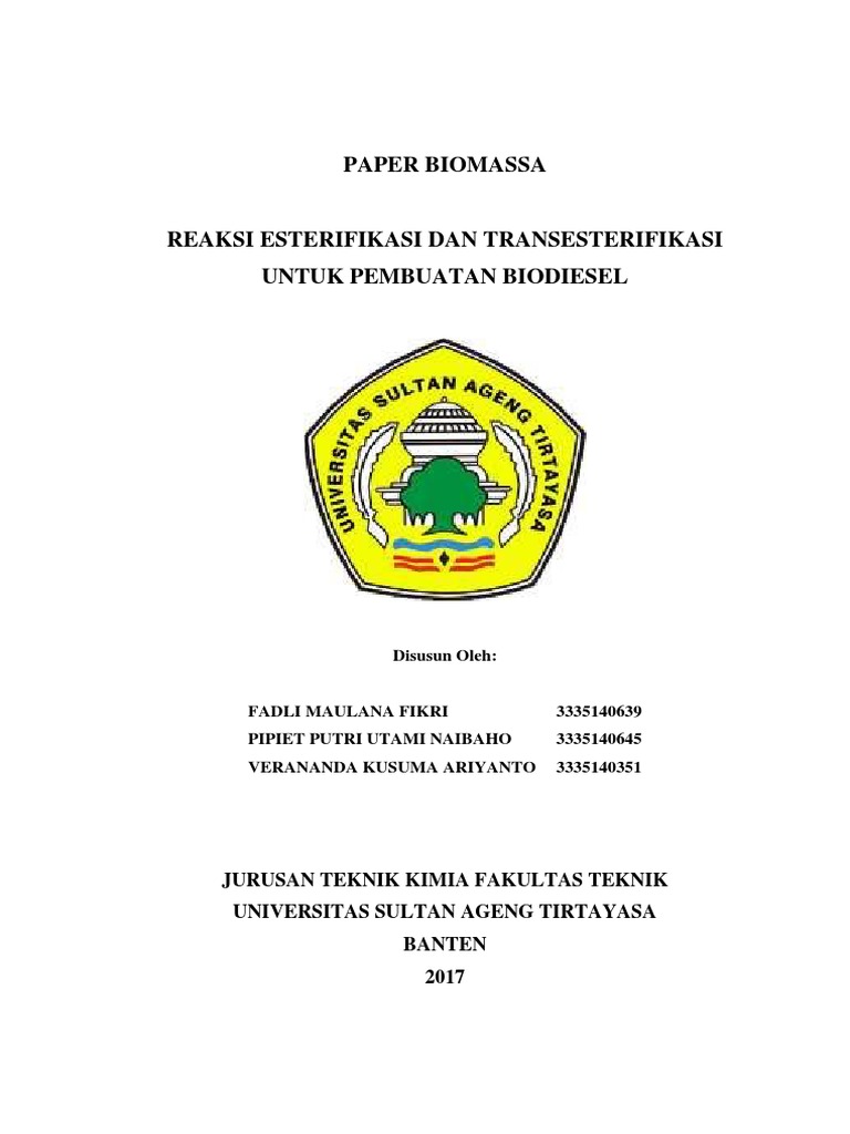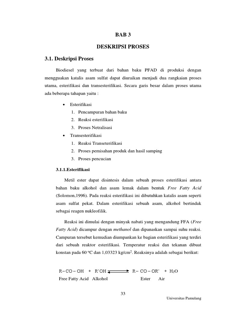 Reaksi esterifikasi dan transesterifikasi. Reaksi dapat diselesaikan dengan bantuan enzim biokatalis khususnya lipase. Ester adalah senyawa kimia yang diturunkan dari asam dengan mengganti gugus oh nya dengan gugus alkoksi. Faktor faktor yang berpengaruh pada reaksi esterifikasi adalah waktu reaksi pengadukan katalisator dan suhu reaksi.