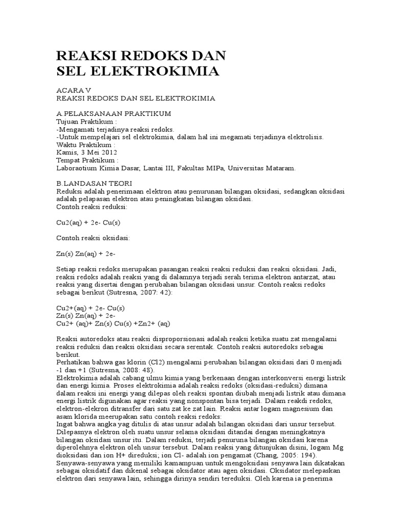 Bab 2 Reaksi Redoks Dan Elektrokimia Nbsp 26 Kimia Sma Jilid 3 Di Kelas X Anda Sudah Mempelajari Pengertian Oksidasi Dan Reduksi Pada Peristiwa Oksidasi Dan Reduksi Sebelum Dan Pdf Document