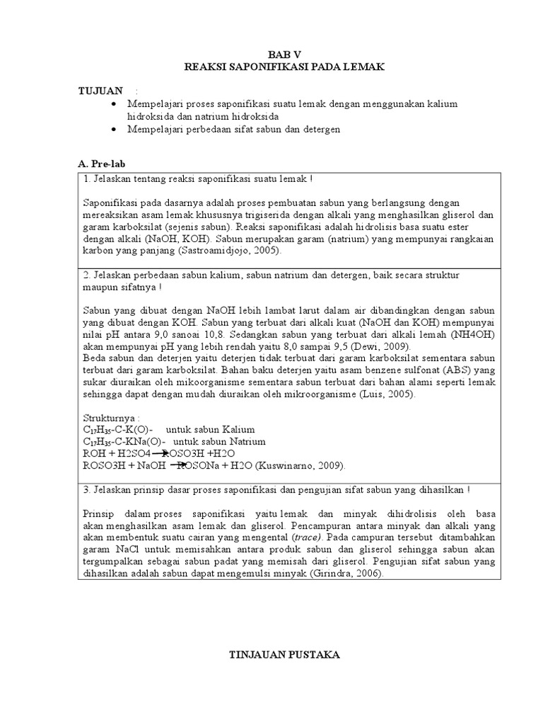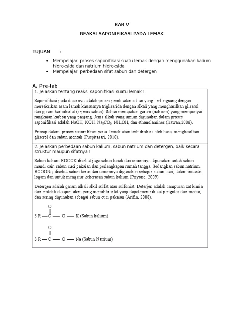 Doc I Reaksi Saponifikasi Dan Pengujian Sifat Surfaktan Sabun Dan Deterjen Done Raras Paramasari Academia Edu