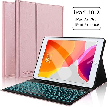 Amazon Com Ipad Air 3 3rd Gen 2019 Case With Keyboard Compatible With Ipad Pro 10 5 Inch 2017 Smart Wireless Bluetooth 7 Color Backlit Folio Leather Case Rose Gold Computers Accessories