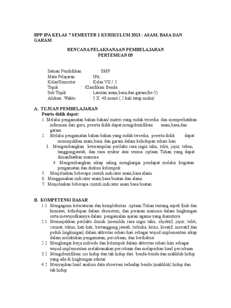 Rpp Ipa Smp Kelas 7 Kurikulum 2013 Revisi 2017 Shopee Indonesia