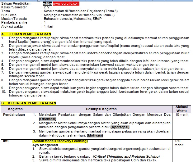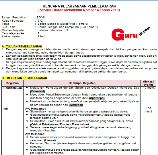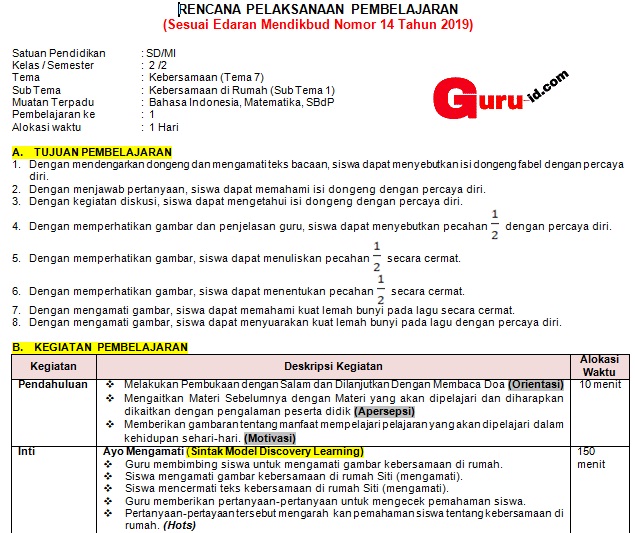 Download Contoh Rpp Daring Kelas 5 Sd 2020 2021 Infoguruku
