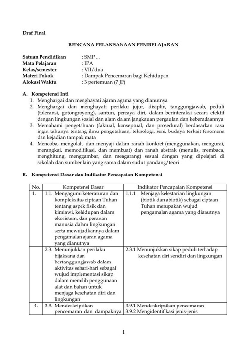 Rpp 1 Lembar Ipa Terpadu Kelas 7 Semester 1 2 Revisi 2020 2021 Kherysuryawan Id