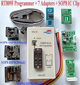 Amazon Com Setctop Rt809f Programmer 8 Adapters Ic Clip Clamp 1 8v Adapter Vga Lcd Programmer Icsp Board 24 25 93 Serise Ic Computers Accessories