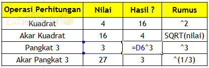 Ilmu Pendidikan Dan Pelatihan Rumus Kuadrat Akar Kuadrat Pangkat Dan Akar Pangkat Pada Ms Excel