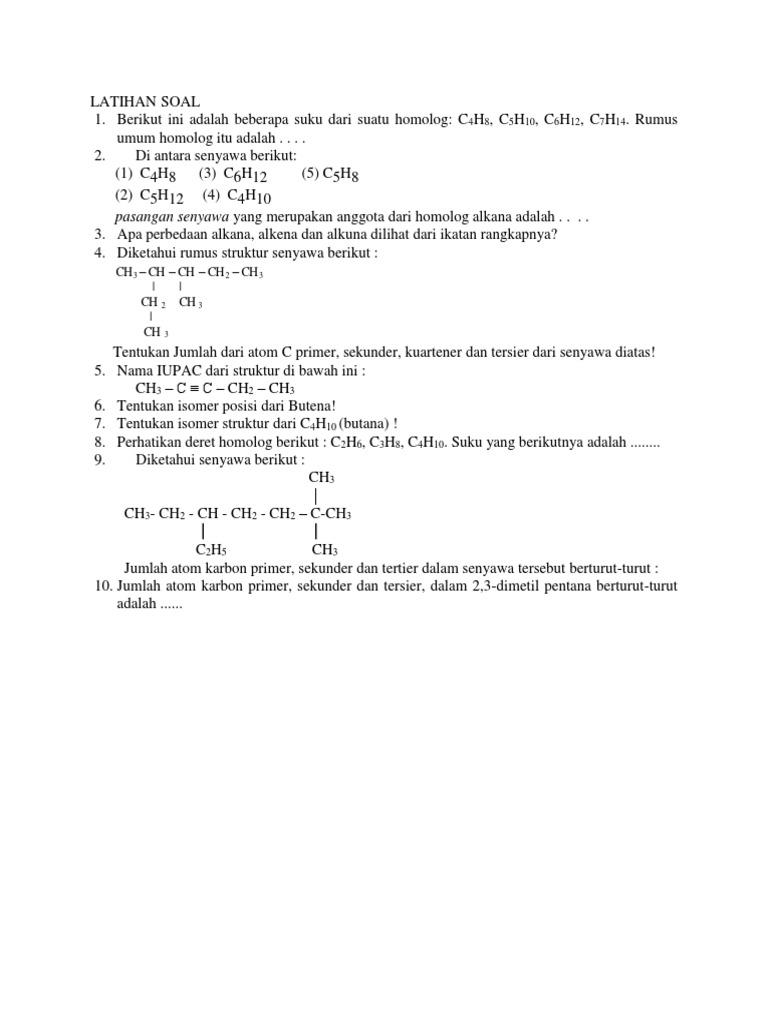 Tentukan Jumlah Atom Karbon Primer Sekunder Tersier Dan Kuartener Dalam Senyawa Senyawa Berikut Brainly Co Id
