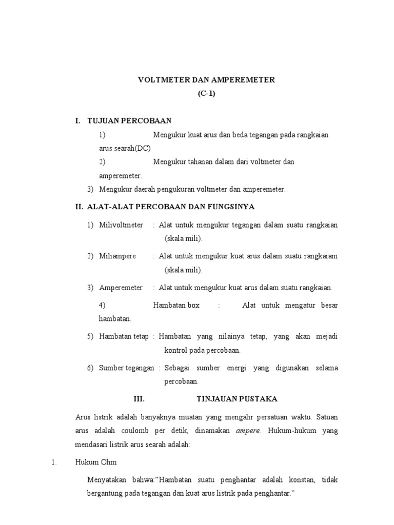 4 Amperemeter Dan Voltmeter Dc Docx Laporan Praktikum Fisika Dasar Ii U201cpercobaan Amperemeter Dan Voltmeter Dc U201d Disusun Untuk Memenuhi Tugas Mata Course Hero